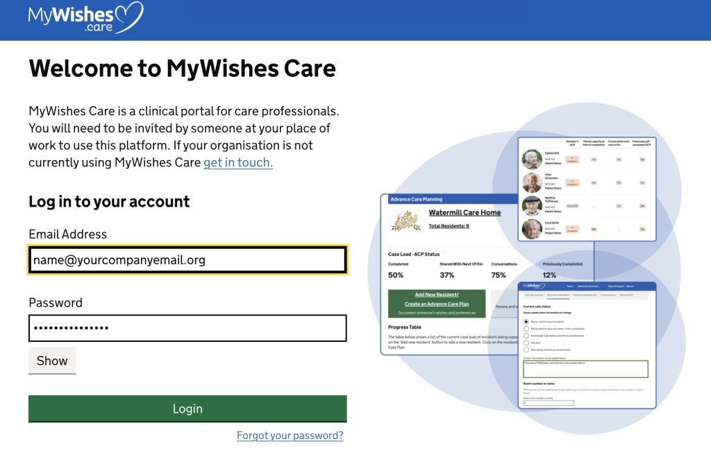 If you do not have the authority to request a free trial, ask a suitable colleague if they think MyWishes Care is suitable for your care organisation.